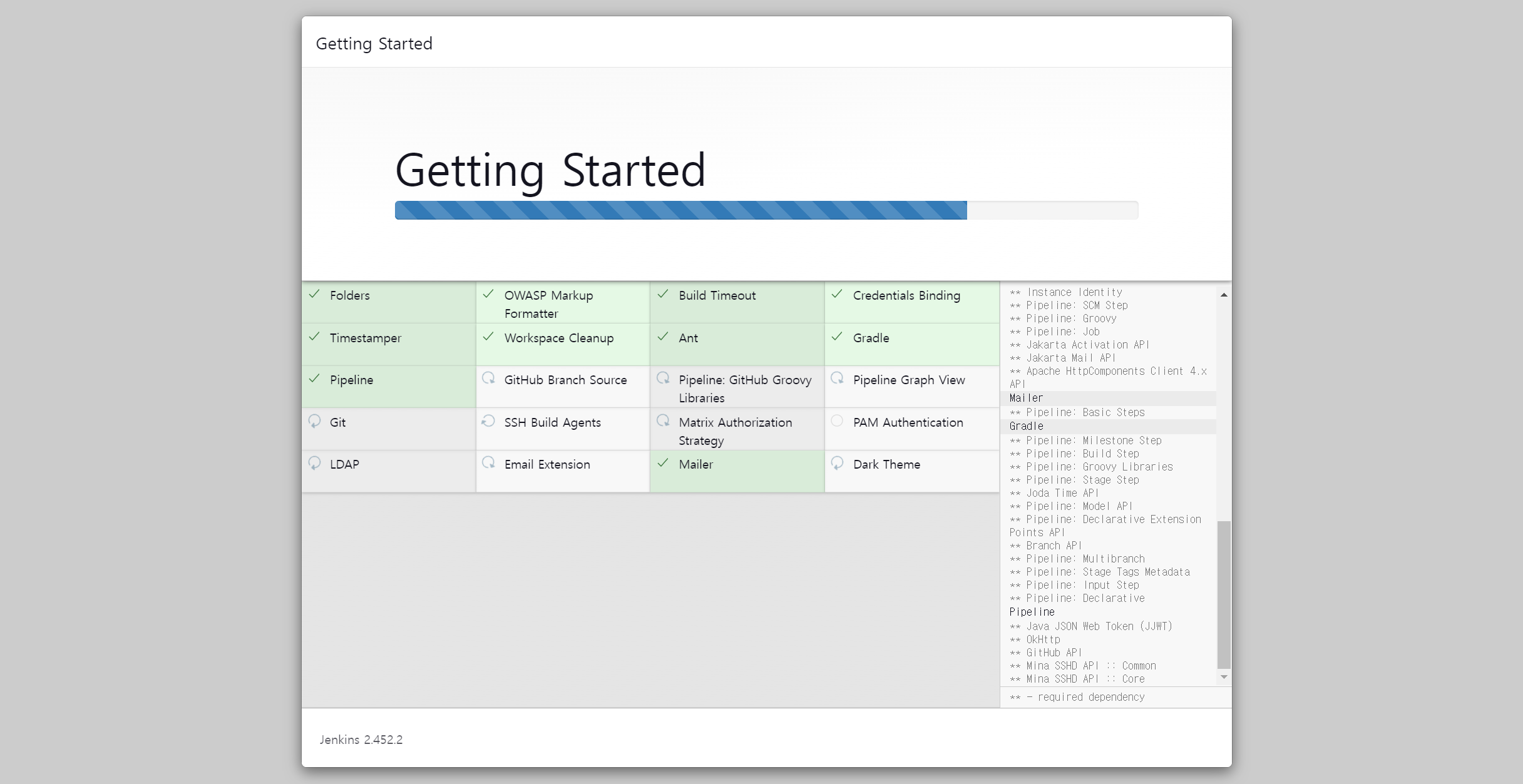 플러그인 설치가 진행된다. (대략 5~15분 정도 소요됨)
