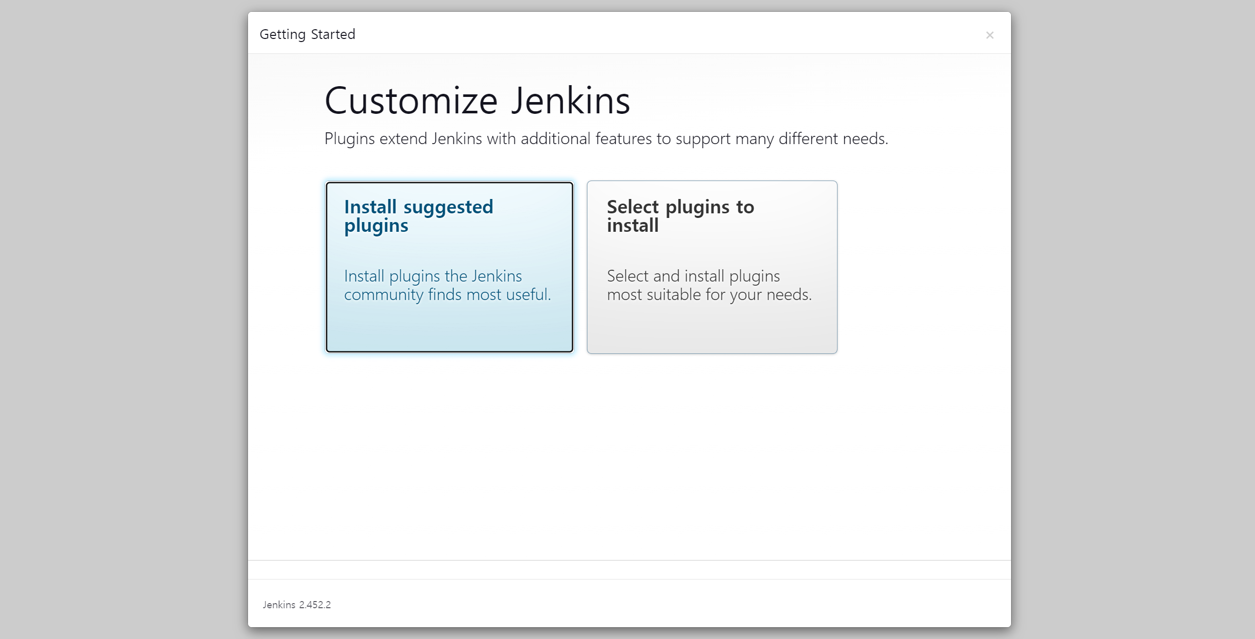 특별히 설치해야 하는 플러그인이 없다면, [Install Suggested plugins]를 선택한다.