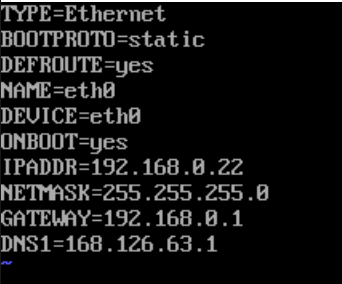 // NAME, DEVICE 를 eth0으로 변경해준 후 IP 정보를 설정한다.